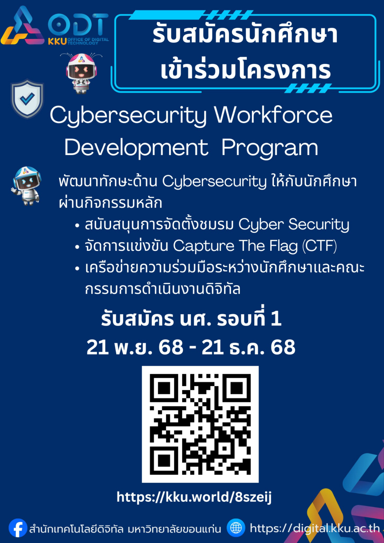 เปิดรับสมัครนักศึกษา! Cybersecurity Workforce Development Program พัฒนาทักษะด้าน Cybersecurity ผ่านกิจกรรมหลัก