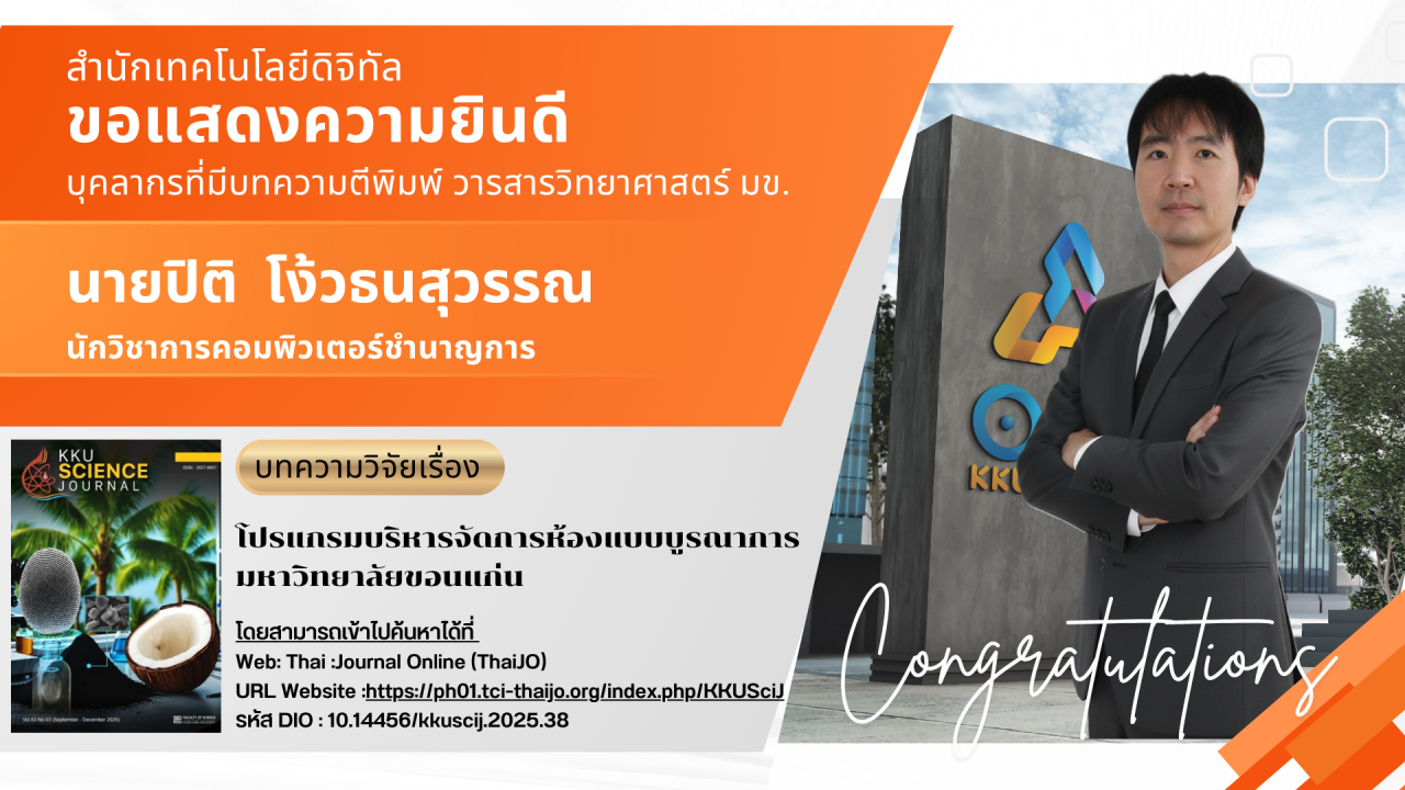 ขอแสดงความยินดีกับบุคลากรที่ตีพิมพ์ในวารสาน KKU Science Journal
