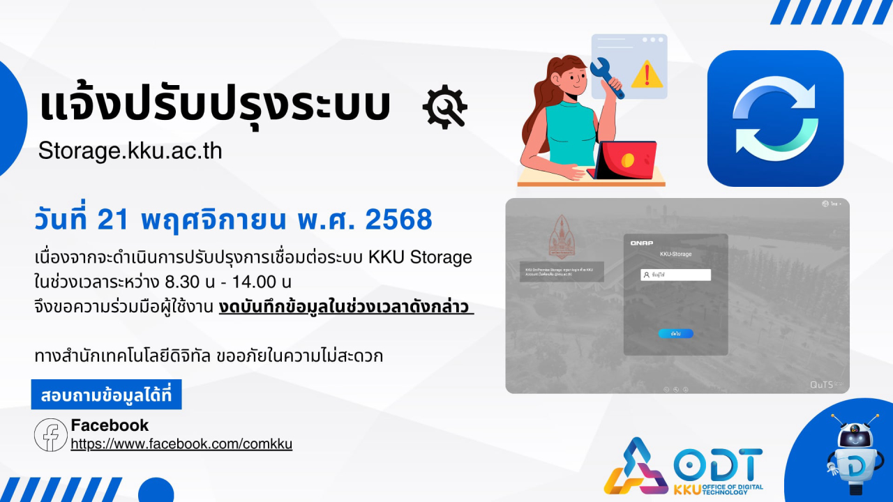 แจ้งปรับปรุงระบบ KKU Storage วันที่: 21 พฤศจิกายน 2568